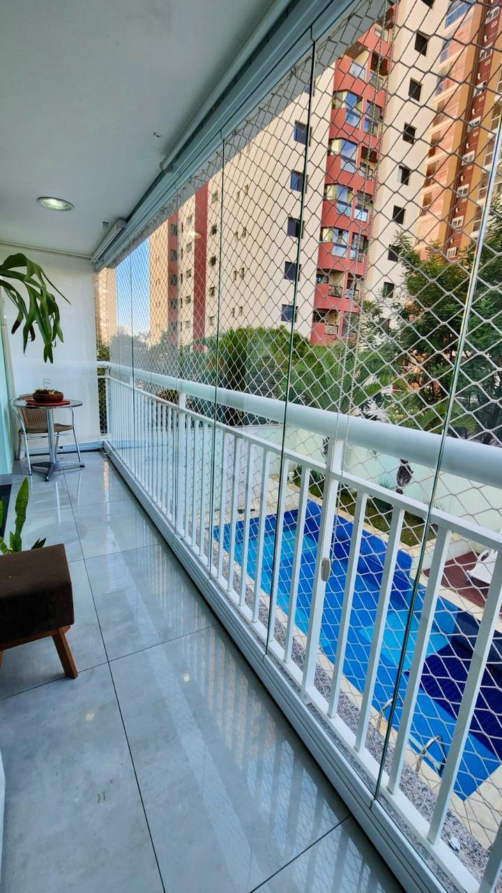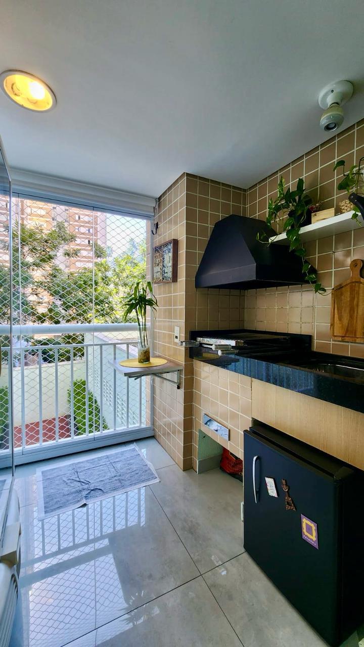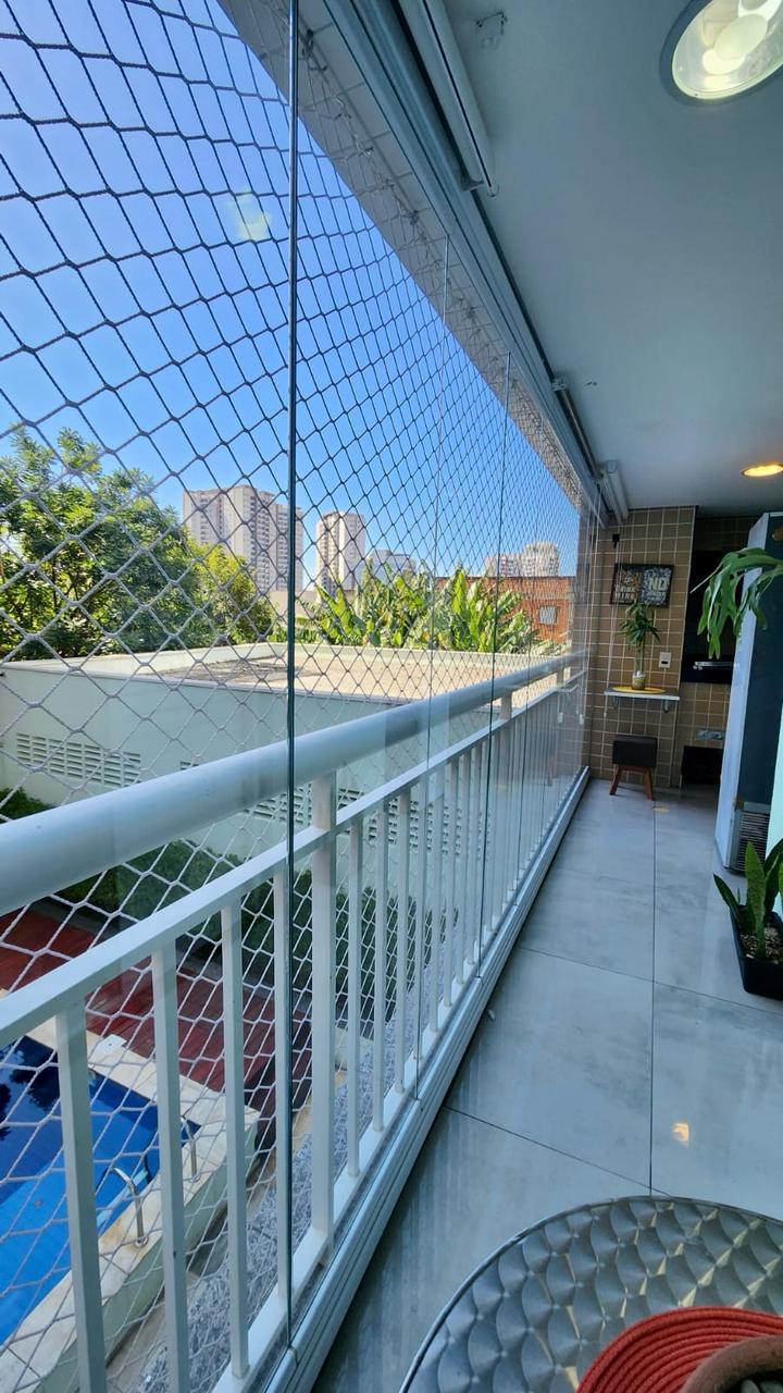 03 dormitórios ( sendo uma 1 suíte), 02 banheiros, cozinha completa, lavanderia, sala dois ambientes e sacada gourmet. Todos os ambientes com móveis planejados.